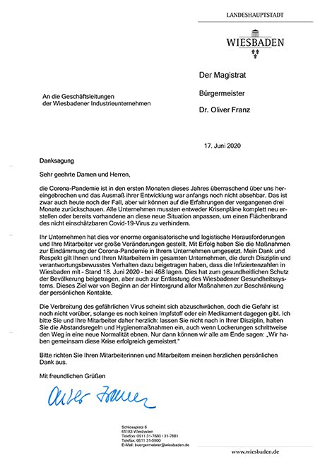 Schreiben von Bürgermeister und Wirtschaftsdezernent Dr. Oliver Franz mit Informationen zum Konjunktur- und Krisenbewältigungspaket sowie zum Zukunftspaket, welche die Bundesregierung im Juni 2020 beschlossen hat.